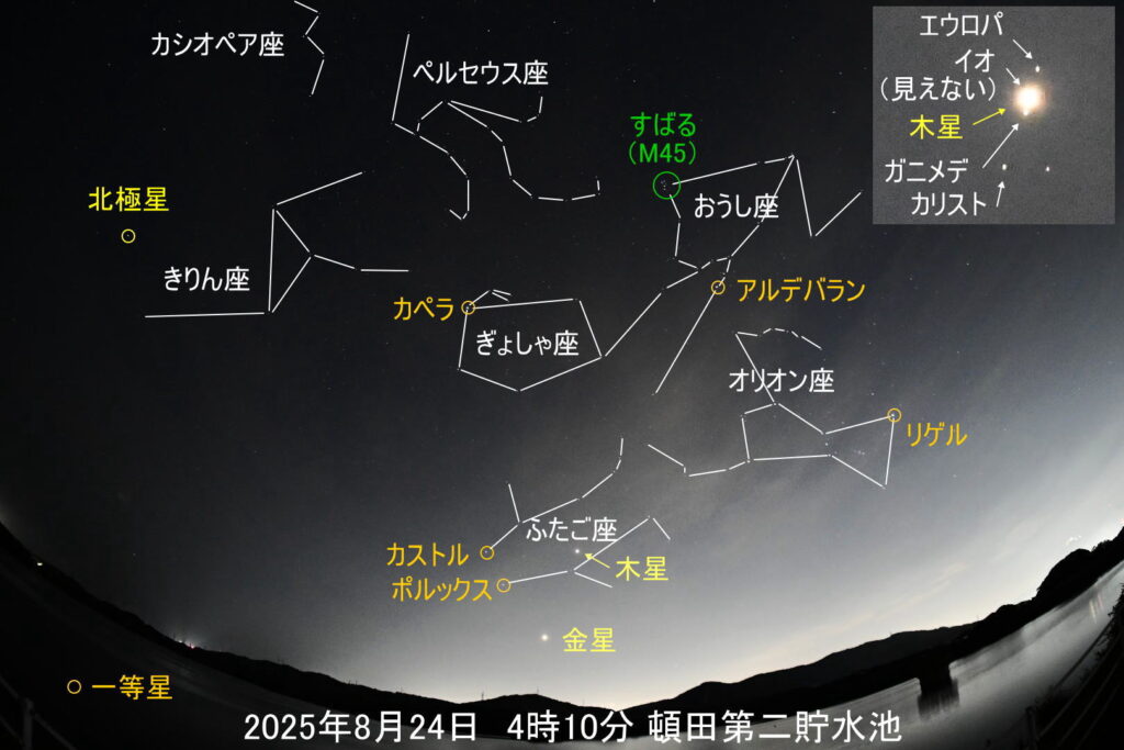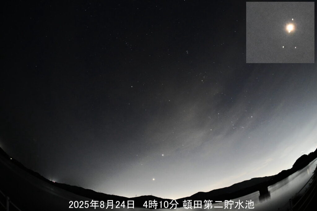 さて、それはいいけど、天気がいいおかげで星空観察が面白い。夜は酒飲んでて集中力内から朝4時前後に近くの頓田貯水池まで出かけて星空の写真を撮ってるよ。最近はね、木星とその四つの衛星が僕の素人カメラでも撮影ができる。