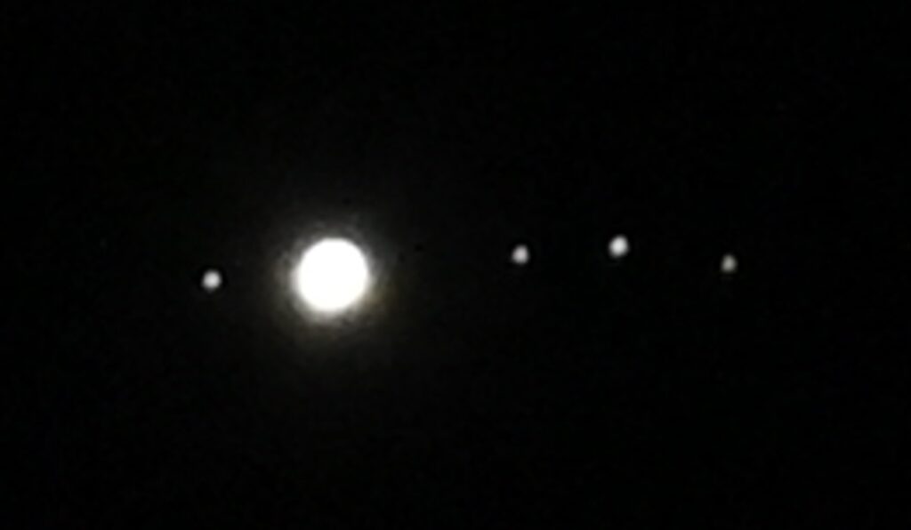 木星と4つの衛星、イオ、エウロパ、ガニメデ、カリストらしいのが写ったよ。